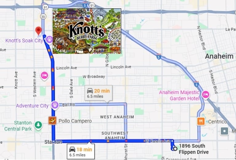 5 min (1.8 miles) to Disneyland, 8 min (3 miles) to Angel Stadium, 20 min (11 miles) to Huntington Beach