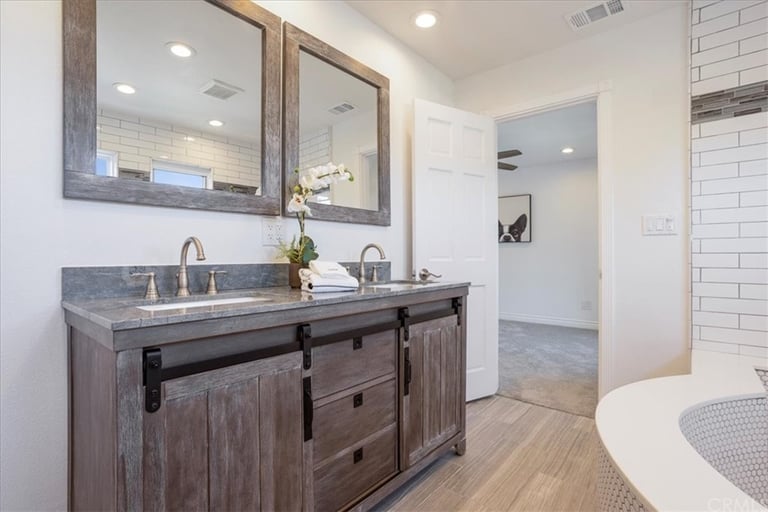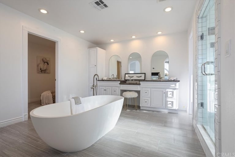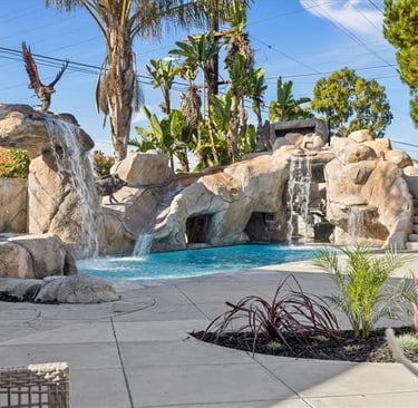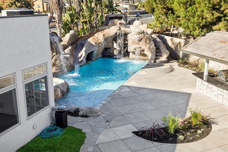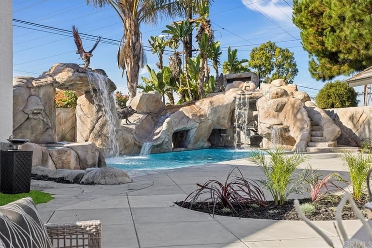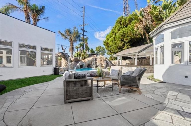 Welcome to your upscale retreat in the highly desirable Fountain Valley community! This luxuriously remodeled estate boasts 8 bedrooms, 6 full baths, and ~5,100 sq ft of elegant living space on a generous 9,384 sq ft lot perfect for families, professionals, or multigenerational living. Inside Features: Soaring ceilings, wrought-iron staircase, dual master suites (each with fireplace & office/seating area) Gourmet kitchen with Viking, Miele & Sub-Zero appliances, massive island, custom cabinetry & backyard views Multiple living areas, including a family room with built-in bar & wine storage Luxurious finishes throughout, designed for both comfort and style Outdoor Oasis: Resort-style pool with stone grotto slide, spa, waterfalls, and sunken bar Built-in BBQ, prep kitchen, and spacious patio for entertaining Perfect blend of relaxation and hosting space Additional Perks: 3-car garage with epoxy flooring + ample driveway parking Pet-friendly and recently renovated with premium upgrades
